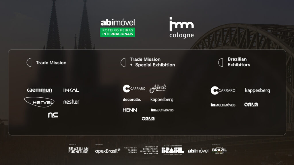 For 2026, Brazil’s participation will unfold across three complementary fronts: the exhibition of Brazilian companies in exclusive project booths; and the IMM Cologne 2026 Trade Mission, offered in two formats — one combining business matchmaking with the presentation of a flagship product from the brands, and another focused exclusively on business rounds, involving other companies. Altogether, 12 participants will take part in the fair.