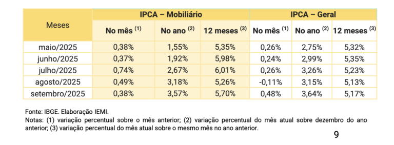 De acordo com o IPCA (Índice de Preços ao Consumidor Amplo), os preços do mobiliário nacional aumentaram 0,38% em setembro, acumulando +3,57% no ano e +5,70% em 12 meses, ligeiramente acima da inflação geral (+5,17%).